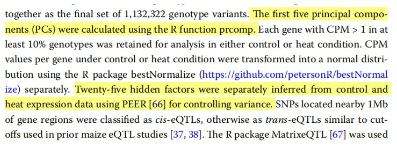 我们在之前的文章中分享了eQTL的分析流程,其中提到了需要准备协变量文件作为输入,在这篇文章中,作者也对协变量计算部分进行了描述: