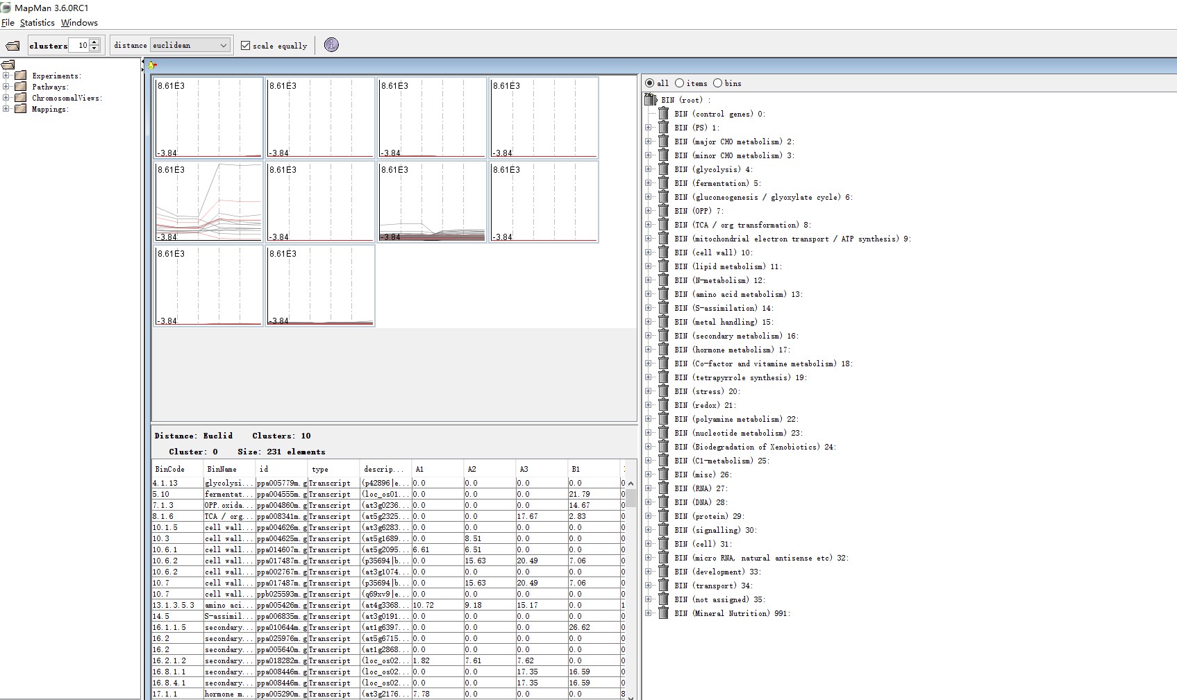 Mapman除了对基因进行注释及表达数据可视化之外,还可以利用软件之际对多样品数据进行聚类分析。主要操作过程如下: