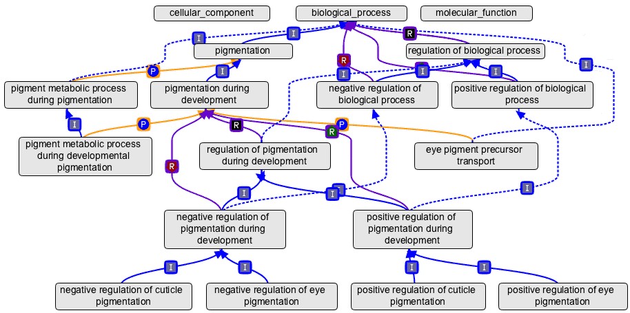 GO定义的术语具有有向无环性(directed acyclic graphs,DAGs)的特点,而并非是传统的等级制定义方式。