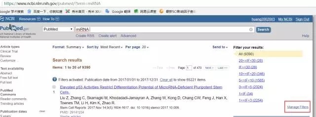 首先,随便在pubmed中搜素一下找到:manager filters 点击进入(在右下角红框框处),当然我的IF已经设置好了。