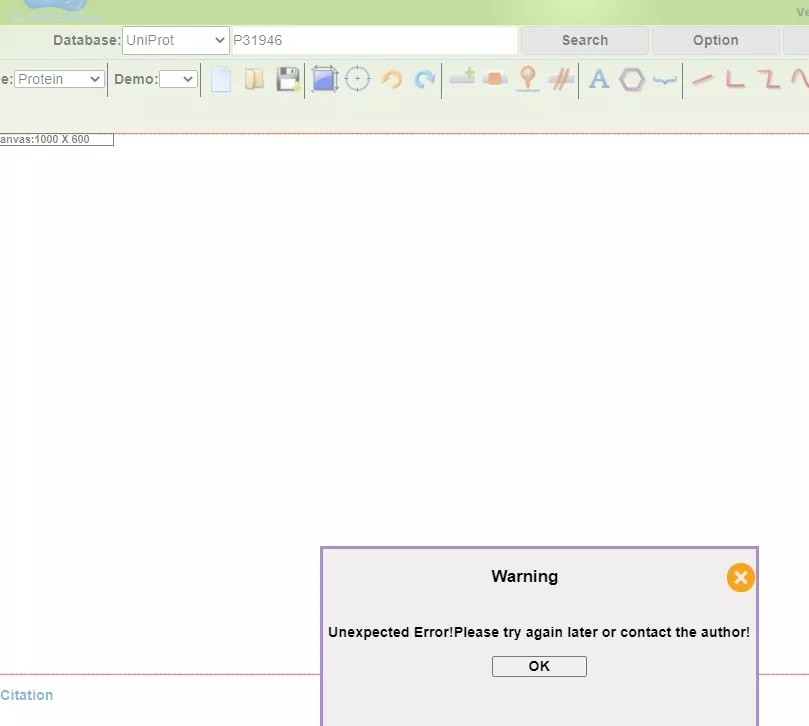 3. 输入蛋白质ID生成图在IBS网站首页点击FOR DATABASE,目前只支持uniprot一个蛋白数据库,可以直接搜索蛋白质的ID进行绘图,不过小编体验了一下,目前网站存在故障未能运行,不过小编觉得上面2种方式就已经够用了。