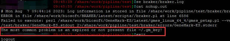 在使用braker时,偶尔会遇到~/.gm_key过期的错误。报错信息如下: