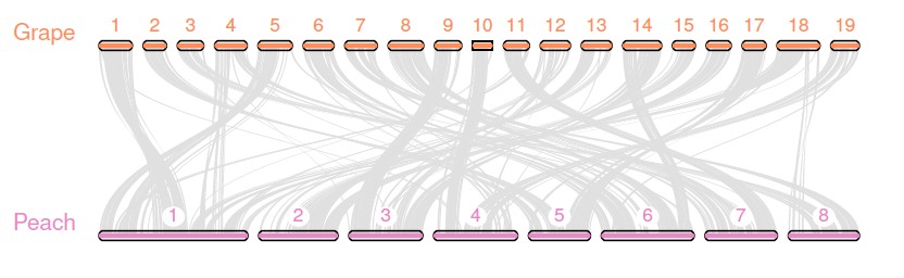 MCscan可以用于查看多个基因组(或单个基因组内)中共线性区段的关系。今天我们介绍python版的MCscan(JCVI 包),其中包装了很多的绘图功能。这里介绍具体使用方法(以葡萄和桃子两基因组分析为例)。