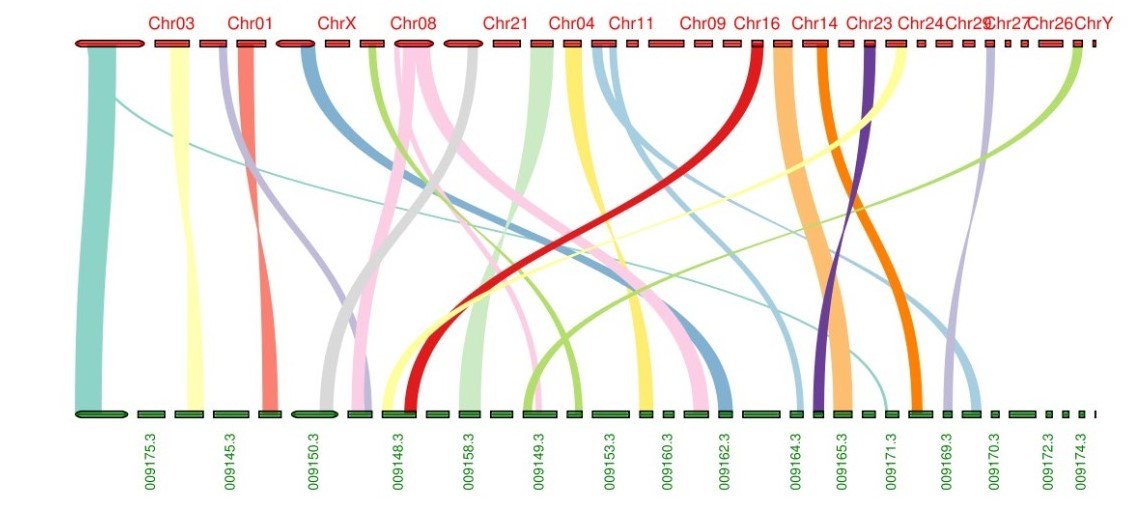 个性化设置显示颜色,最近做的一个基因组的共线性分析: