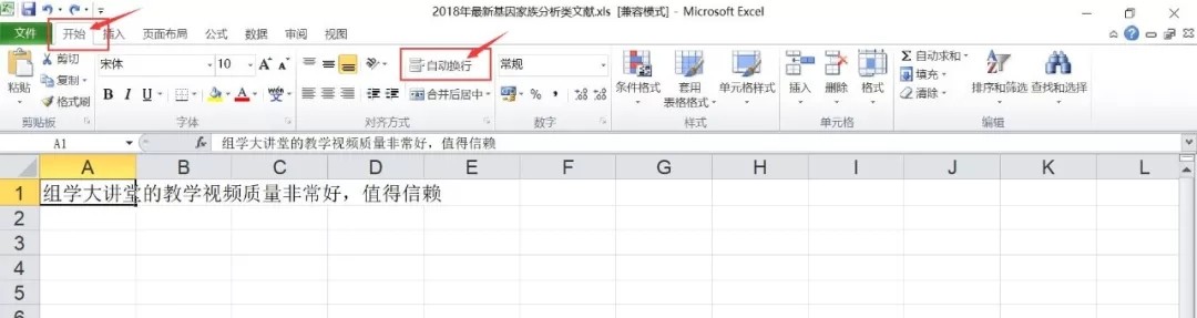 一是“Alt+Enter”进行换行,二是点击“开始-自动换行”。