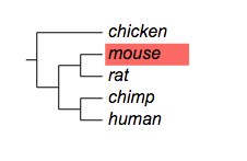 (chicken,((mouse,rat),(chimp,human)));