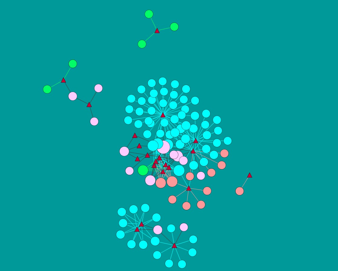在利用Cytoscape绘图的过程中如何对具有不同属性(分类)的点(以及与该点相连的线)进行颜色着色呢? 譬如下图 显示了miRNA 和靶基因的相互作用,并基于靶基因的类型对网网络图进行了颜色处理...