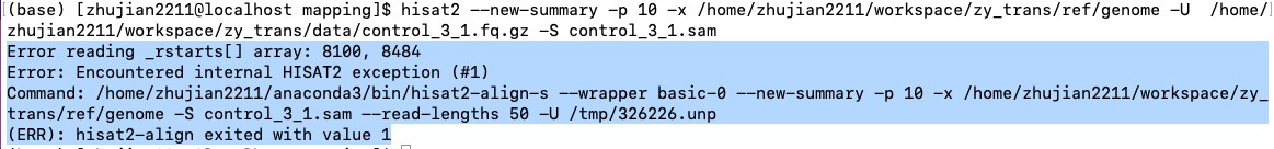 hisat2软件做转录组数据比对时出现的一个报错,百思不得其解,求各位大佬帮忙看下