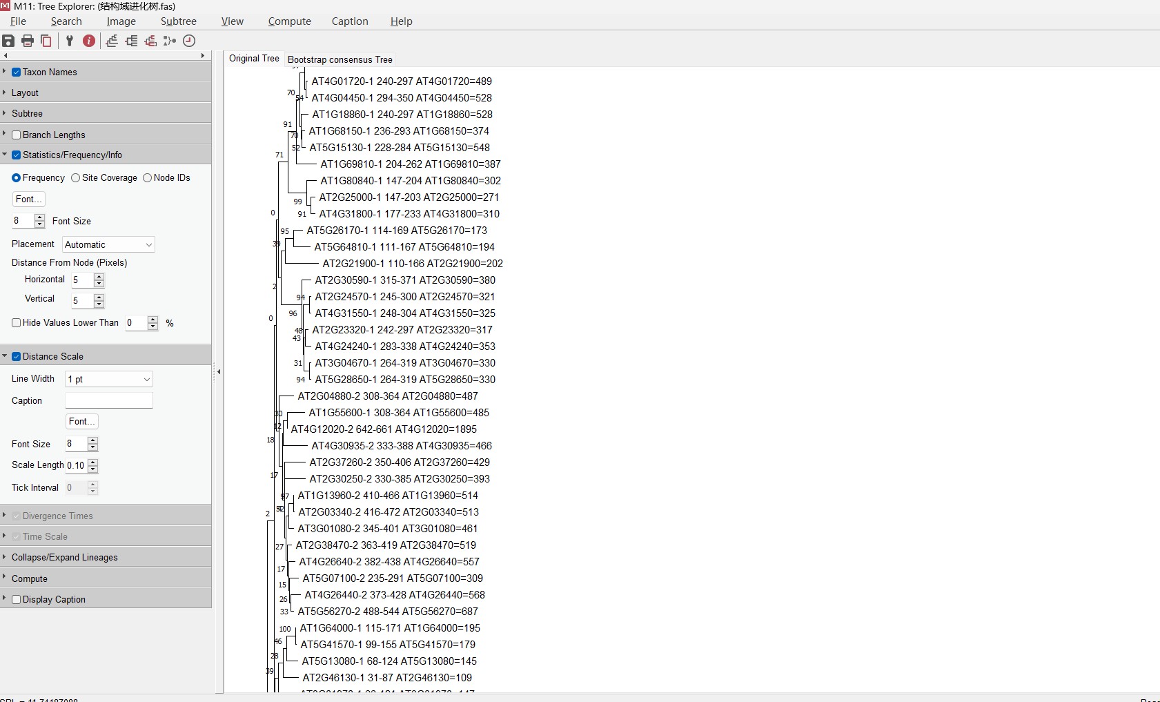 老师好,我想问下为啥用mega软件做出来的的进化树为什么左边的线条这么拥挤呀?第二张是我做的,第一张是视频老师教的