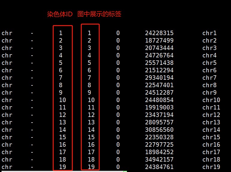 需要检查一下circos绘图配置文件提供的karyotype文件,比如我这里就是Vitis_vinifera.karyotype.txt这个文件: