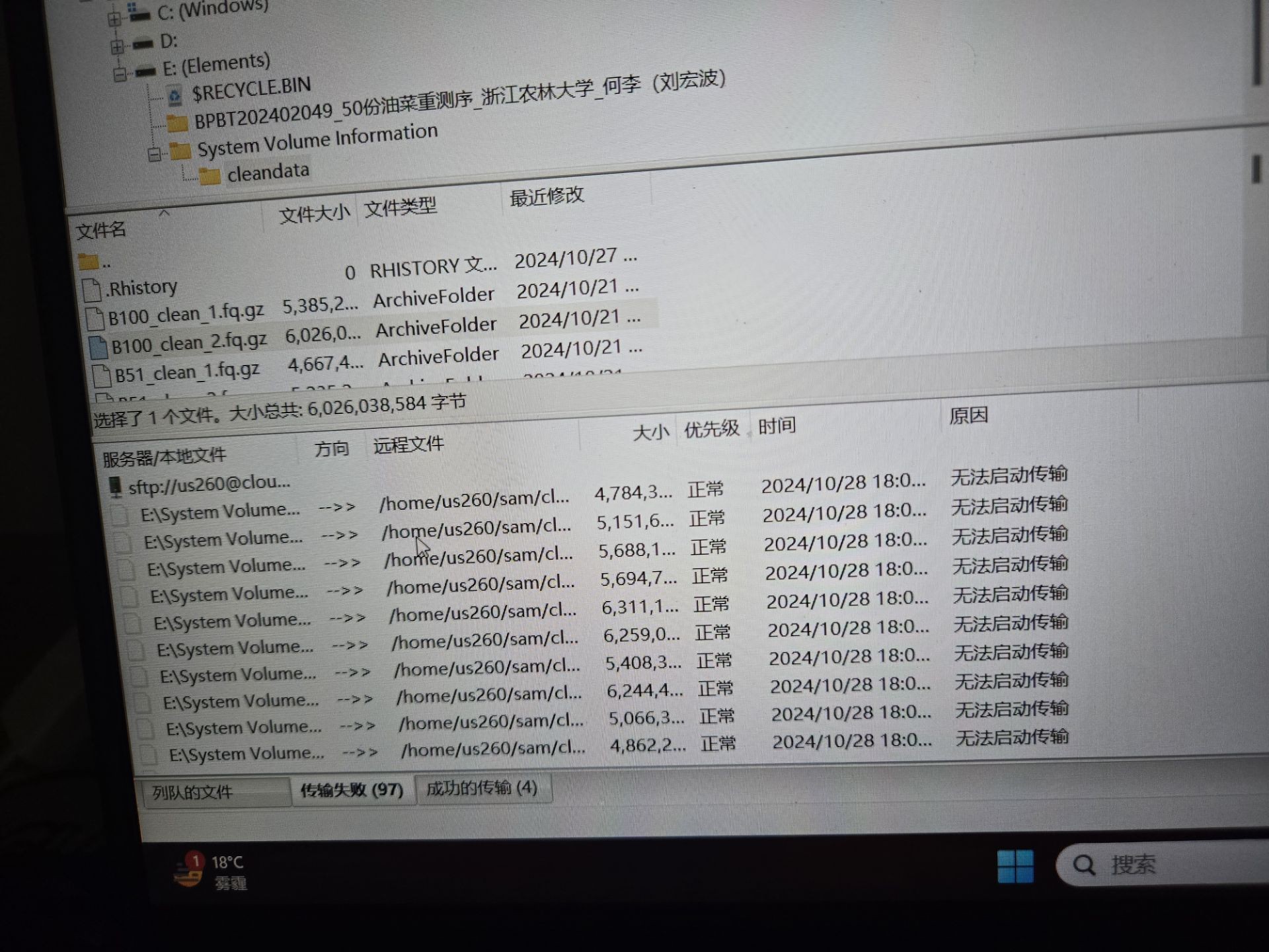 练习服务器只能作为练习使用,不能分析自己的数据,分配的存储有限,你这个存储满了,删除一些不要的文件再传数据:如果要分析自己的数据可以租用我们的云服务器;视频课程