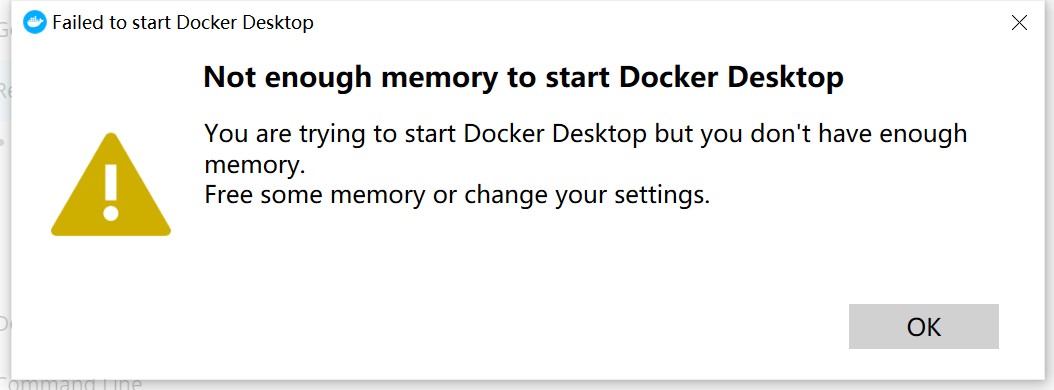 Doker打不开,显示内存不够,电脑还有100G内存: don't have enough memory