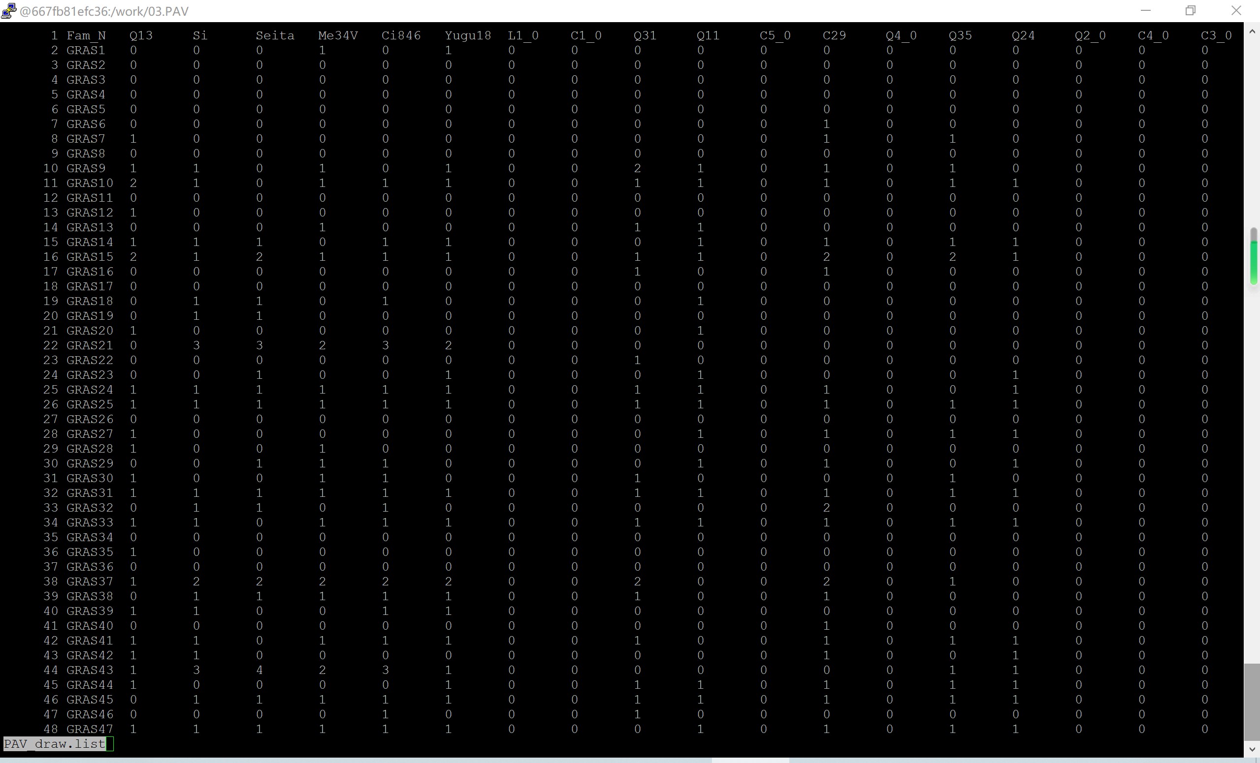 得到的PAV_gene.list就有1970条,但GRAS133一会就有没有数据了,都是空白的,