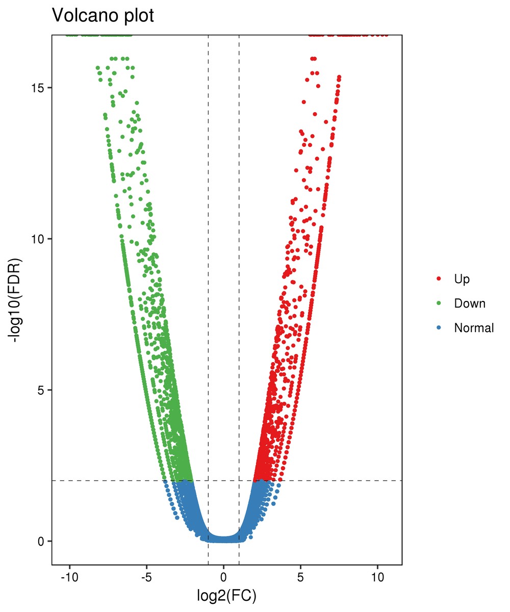 FDR即False Discovery Rate,错误发现率,是通过对差异显著性p值(p-value)进行校正得到的。由于转录组测序的差异表达分析是对大量的基因表达值进行独立的统计假设检验,会存在假阳性问题,因此在进行差异表达分析过程中,采用了公认的Benjamini-Hochberg校正方法对原有假设检验得到的显著性p值(p-value)进行校正,并最终采用FDR作为差异表达基因筛选的关键指标。一般国内公司取FDR<0.01作为默认标准。