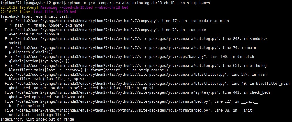 我已经找到了我在chr1A,chr1B,chr1D上同源的一段序列,上面的基因也同源,我相用MCScan画这几个基因的共线性图。但是会报错