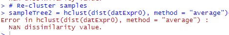 样本聚类报错如下,上面是我的表达矩阵和性状矩阵