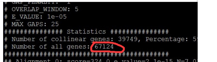 pep.fa文件里的是34511条蛋白,得到的共线性分析结果标识的地方显示9w多个基因,不知道什么原因啊?