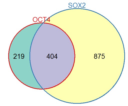 library(Vennerable) data(StemCell) w <- Venn(Sets=StemCell[1:2]) plot(w, type="circles")