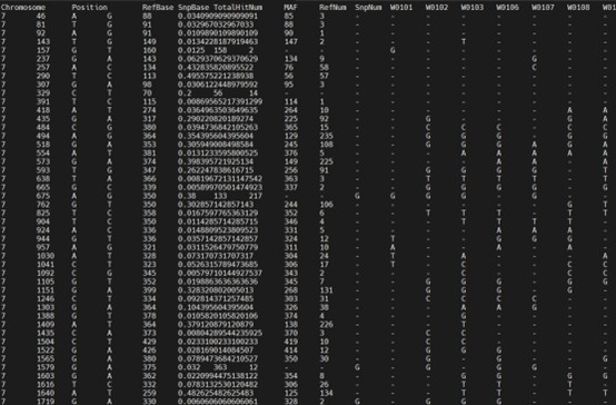 我在http://server.ncgr.ac.cn/RiceHap3/这个网站下载了genotype文件,打开之后如下图片,但是每个个体只显示了一个碱基啊,并不是vcf文件。不知道咋理解